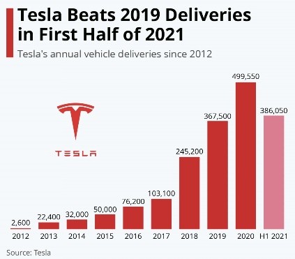 26日美股盘后,美国电动汽车公司特斯拉发布了第二季度财报,无论盈利还是收入皆超华尔街分析师预期。同时,该公司的季度净收益首次超过了10亿美元,连续第八个季度实现盈利。在芯片短缺的背景下,特斯拉在截至今年6月30日的季度中交付了201250辆电动汽车,产量超过20.6万辆,后者同比增幅逾一倍。值得注意的是,特斯拉在2021年上半年的交付量已超越2019年全年总量。