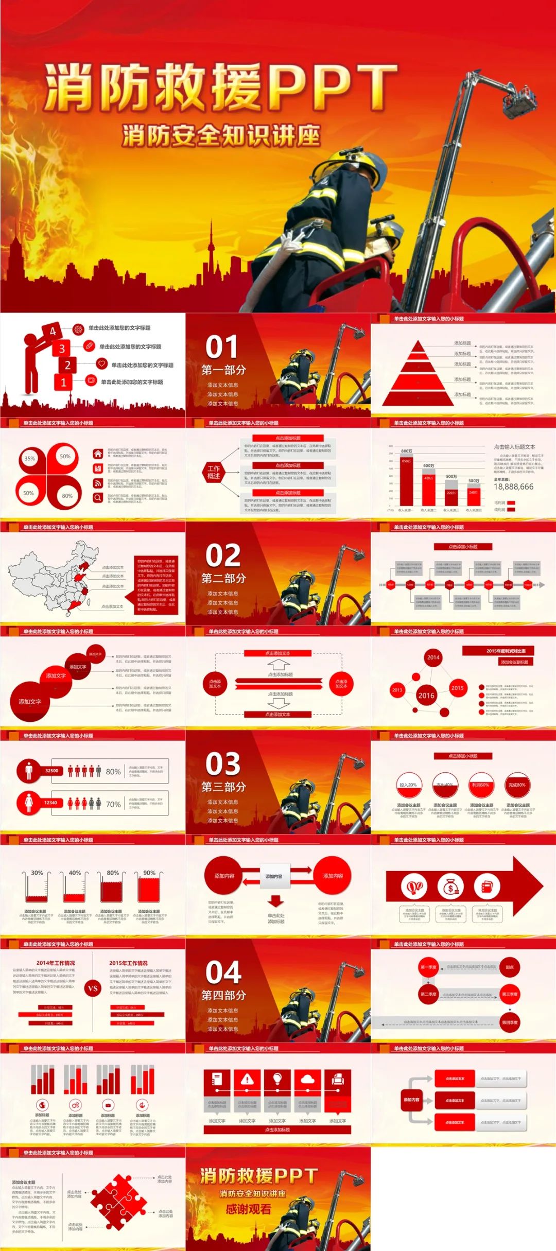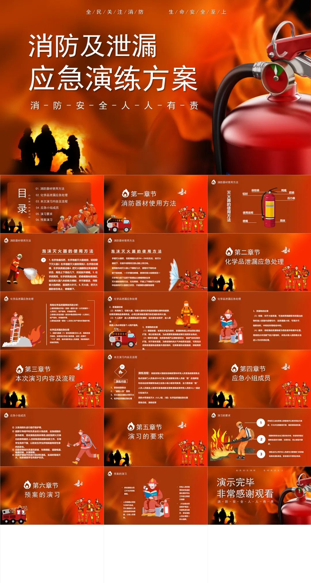 7.今天分享的消防日PPT模板,可以用在消防安全知识培训PPT、消防教育课件PPT和消防应急演练PPT,消防工作汇报材料PPT,消防工作应急方案PPT中,企业消防培训会议等等场合使用