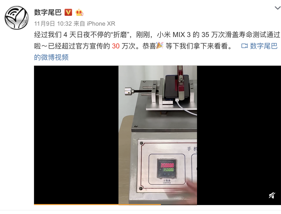 1.小米的手机相信不少人都知道吧!它的手机从发布之初到现在深受用户的喜爱,这也是因为小米发售的手机在同等配置的手机面前都是相当有性价比的,而且还很注重用户的体验性!所以圈了不少的米粉,而且还在今年正式踏上了上市的路程,在上市之后小米仍然坚持着为用户带来优秀的产品,像前段时间雷军带领他的小米团队在北京故宫发布的小米MIX3就很不错的,滑盖屏的设计!而且这个滑盖的设计还不同于普通的滑盖,而是采用磁动力的新技术来解决的,当时雷军在发布会上说它的寿命高达30万次,这个数据已经足以让人感觉很厉害了!但是有网友却不信,想黑小米,还疯狂测试了滑盖的寿命,出来结果自己却被打脸了,滑屏的寿命竟然已经高达35万次!不少米粉表示这下知道厉害了吧!还有网友表示这和宣传的不一样啊,难道这是大彩蛋!或是当时PPT标错数字,把雷军也给带偏了!互动留言:小米MIX3的滑屏寿命这么高,黑子还能继续吗?