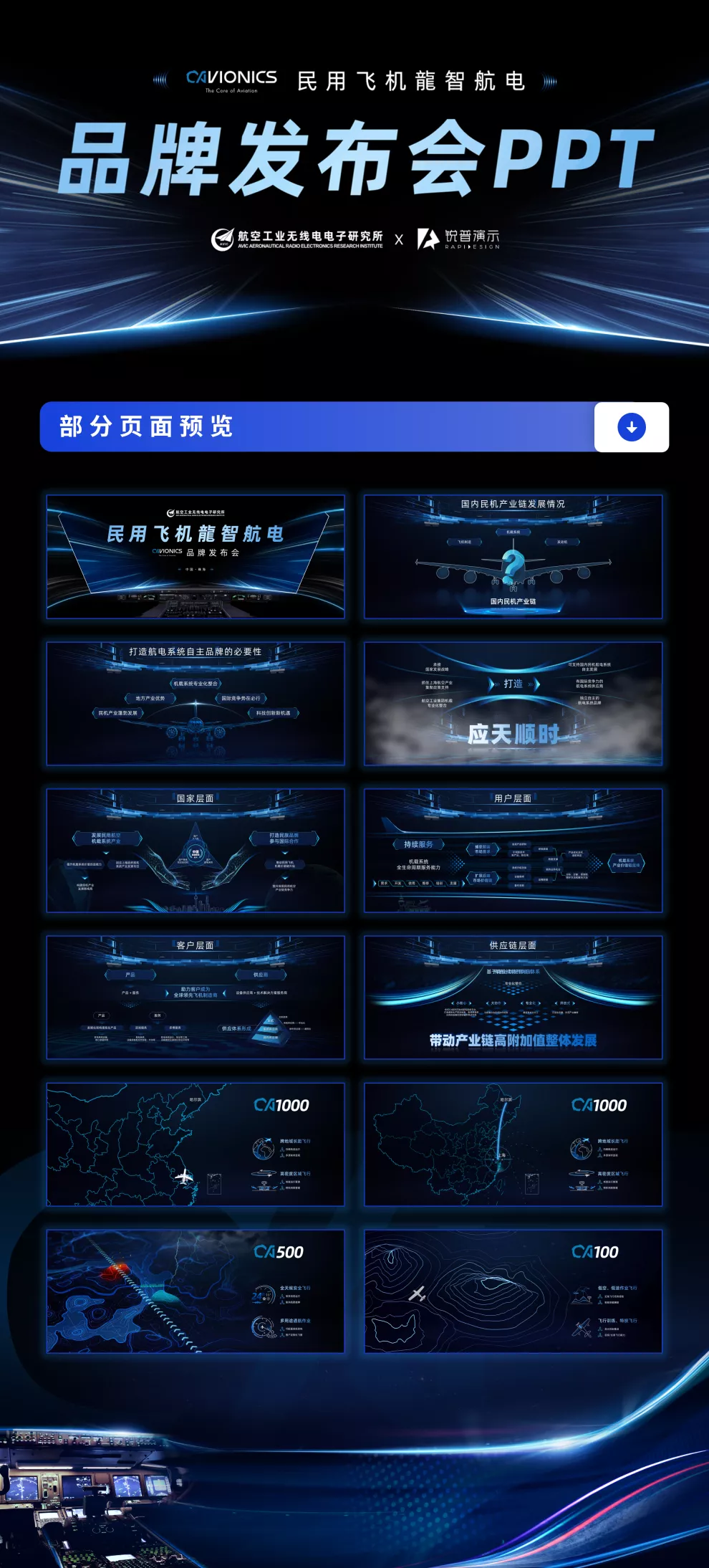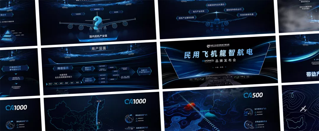 2021年9月29日,中国航空工业上电所的全新民机品牌“龍智航电(CAVIONICS)”(以下简称“CA品牌”)在第十三届中国航展上顺利发布,锐普很荣幸为其提供了发布会的PPT设计服务。
