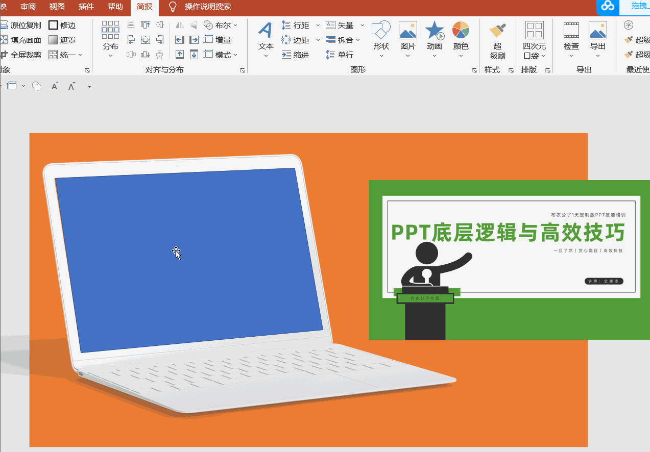 但最近,我从@自律的音律 以前的推文中,了解了免费开源的小顽简报这个插件,竟然发现,在PPT中设置三维样机竟是如此简单,我试验成功之后,直拍大腿,要是早点知道这个插件,得省我多少时间?