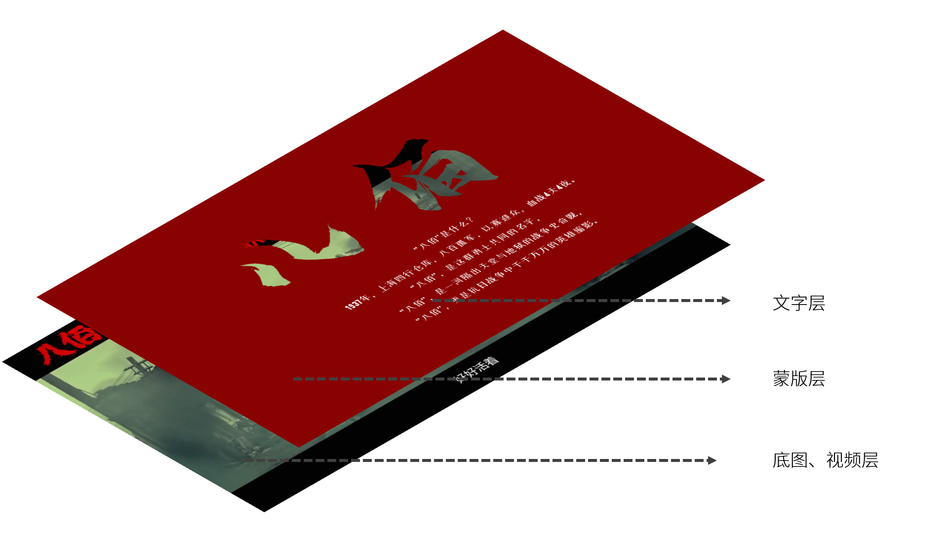 就如上面这张图所示,就是最底层是视频,中间层是一个蒙版,然后把文字排上去就可以了。