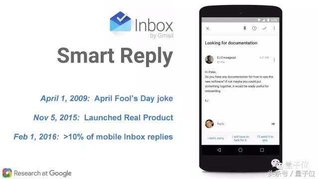 2015年11月5日,真正的产品发布了;到2016年2月1日,Inbox手机应用中由超过10%邮件是自动回复的。