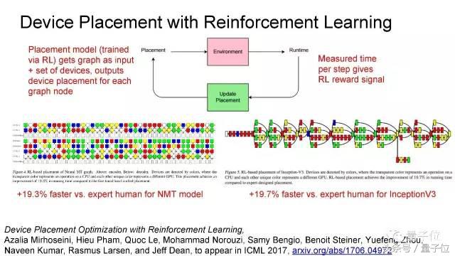 应用这个方法,我们在神经机器翻译模型、Inception-V3模型上,都获得了近20%的速度提升。此前,计算资源的分配智能通过人类专家手工摸索设置。