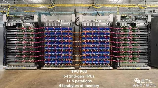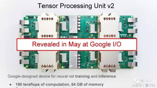 这是我们一直在搞的定制化机器学习加速器(TPU),目标是加速推理以及训练,这个硬件的第一代版本已经在我们的数据中心部署了两年半,在五月的Google I/O大会上,我们展示了第二代TPU。