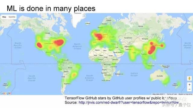 这是世界上为TensorFlow标星的人口分布,全世界几乎都在用机器学习。