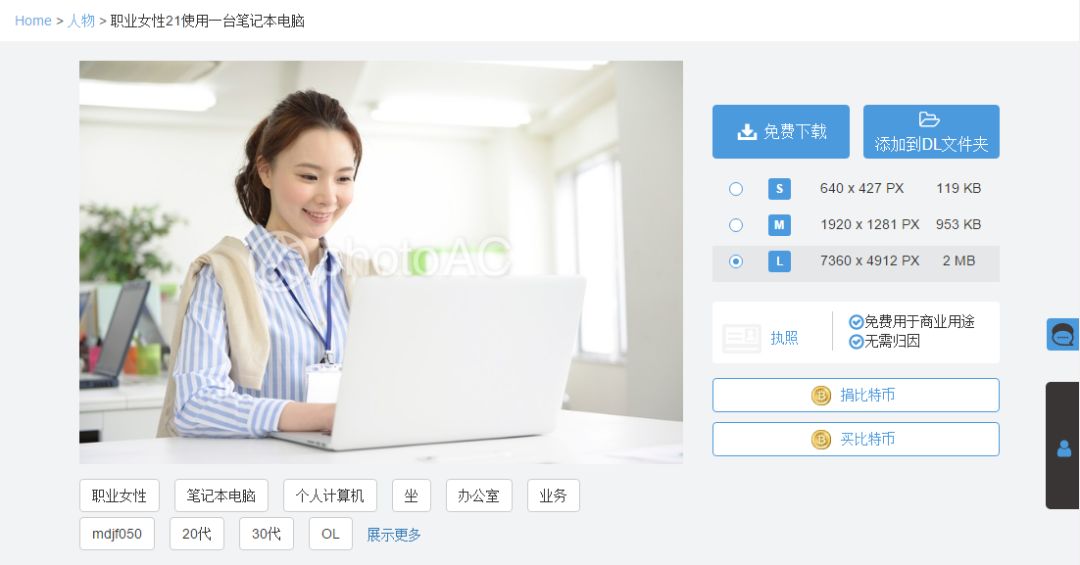 因为是来自日本的图库网站,所以当你搜索人物相关的图片时,页面中显示的多半是东方人的面孔,非常适合我们使用。