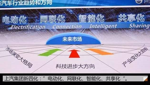 上汽对未来汽车行业率先提出了“电动化、网联化、智能化、共享化”的“新四化”趋势判断,并抢抓机遇、顺势而为,瞄准“新四化”方向持续开展前瞻研究。