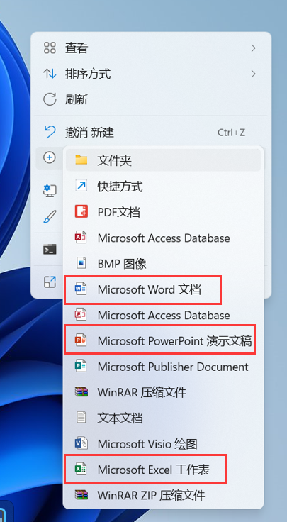 安装完office后,明明可以打开Word,Excel,PPT文件,但右击桌面新建里却没有,如图: