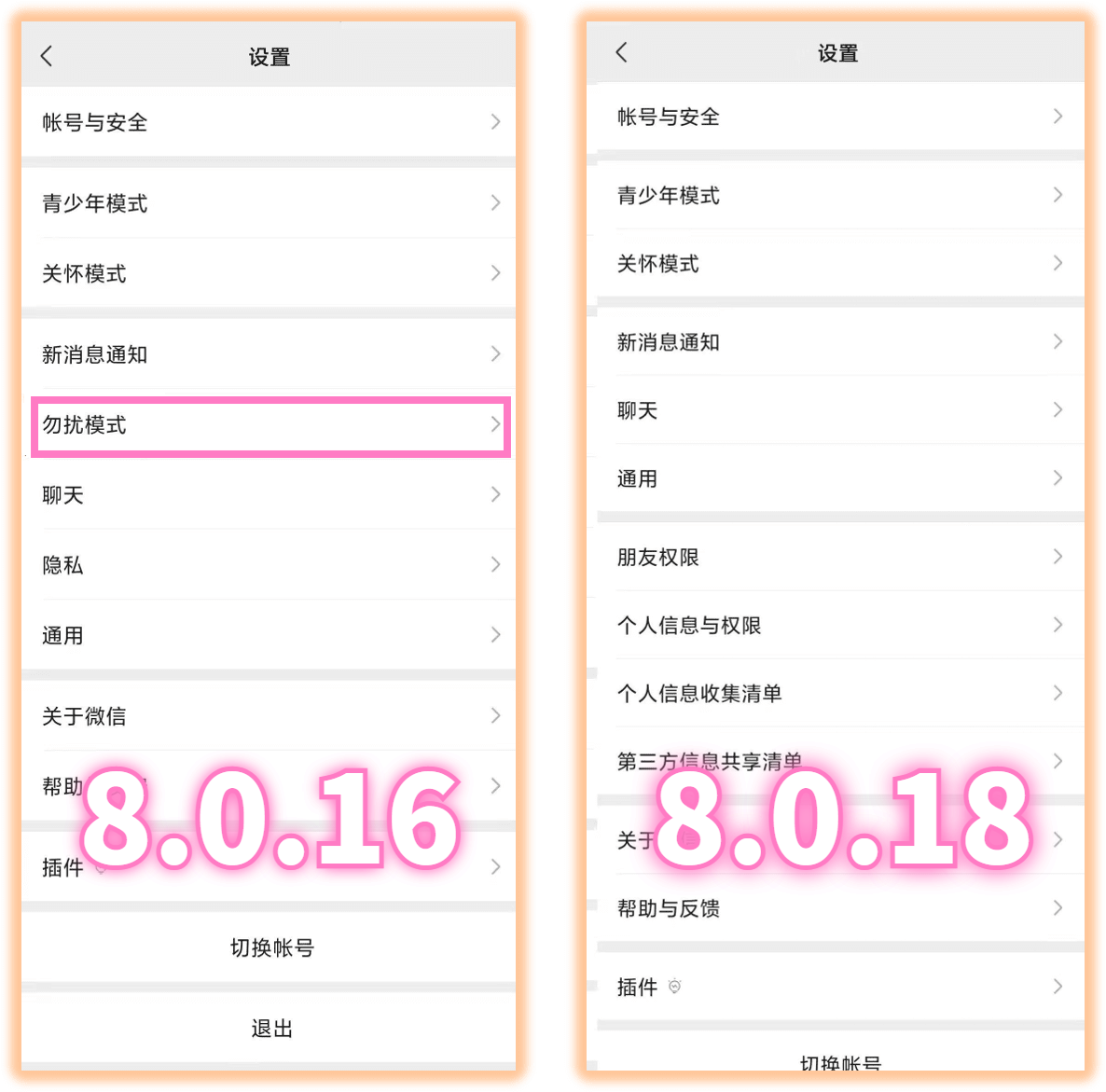 微信8.0.18正式版除了新增的功能、改版的功能,还有被删除的功能。勿扰模式是多么的好用,午休、夜间都能保证睡眠质量,防止被打扰,居然被删了?