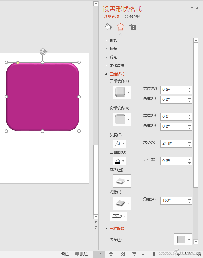 上面的图还是有些中规中矩,其实我们可以进行一些变异处理,让图片看起来更漂亮点。下面这个实例中,最主要的变化就是将列表变成了立体圆角矩形(图3),其中立体圆角矩形的制作方法也很简单,首先绘制一个圆角矩形,然后调出“设置形状格式”窗格,在“三维格式”中选择“顶部棱台”效果,再适当调整深度及光源就可以了(图4)。