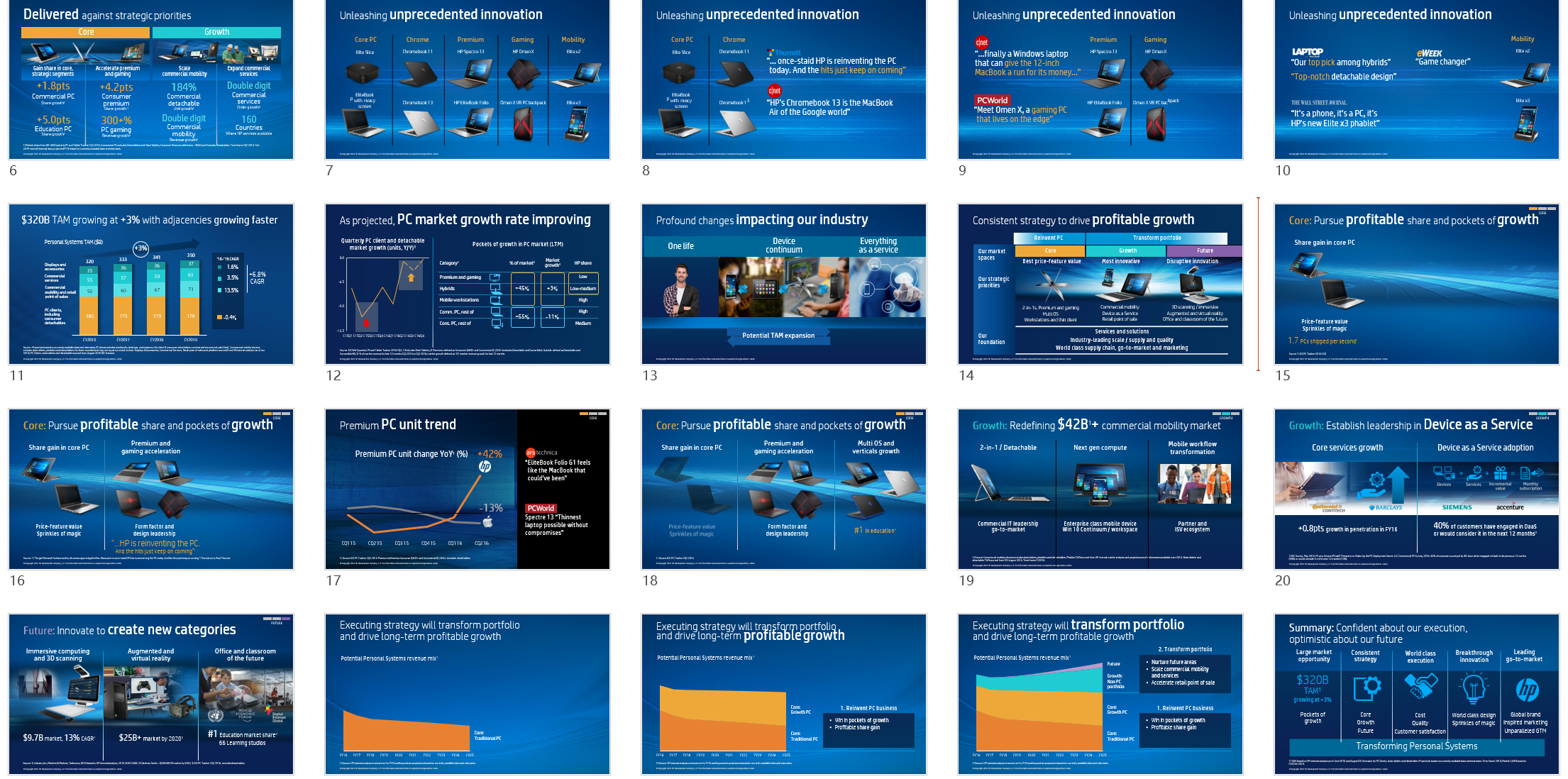 小编找到惠普2016年和2017年的PPT数据,今天我们就来看看这个世界500强惠普的PPT长什么样子吧!
