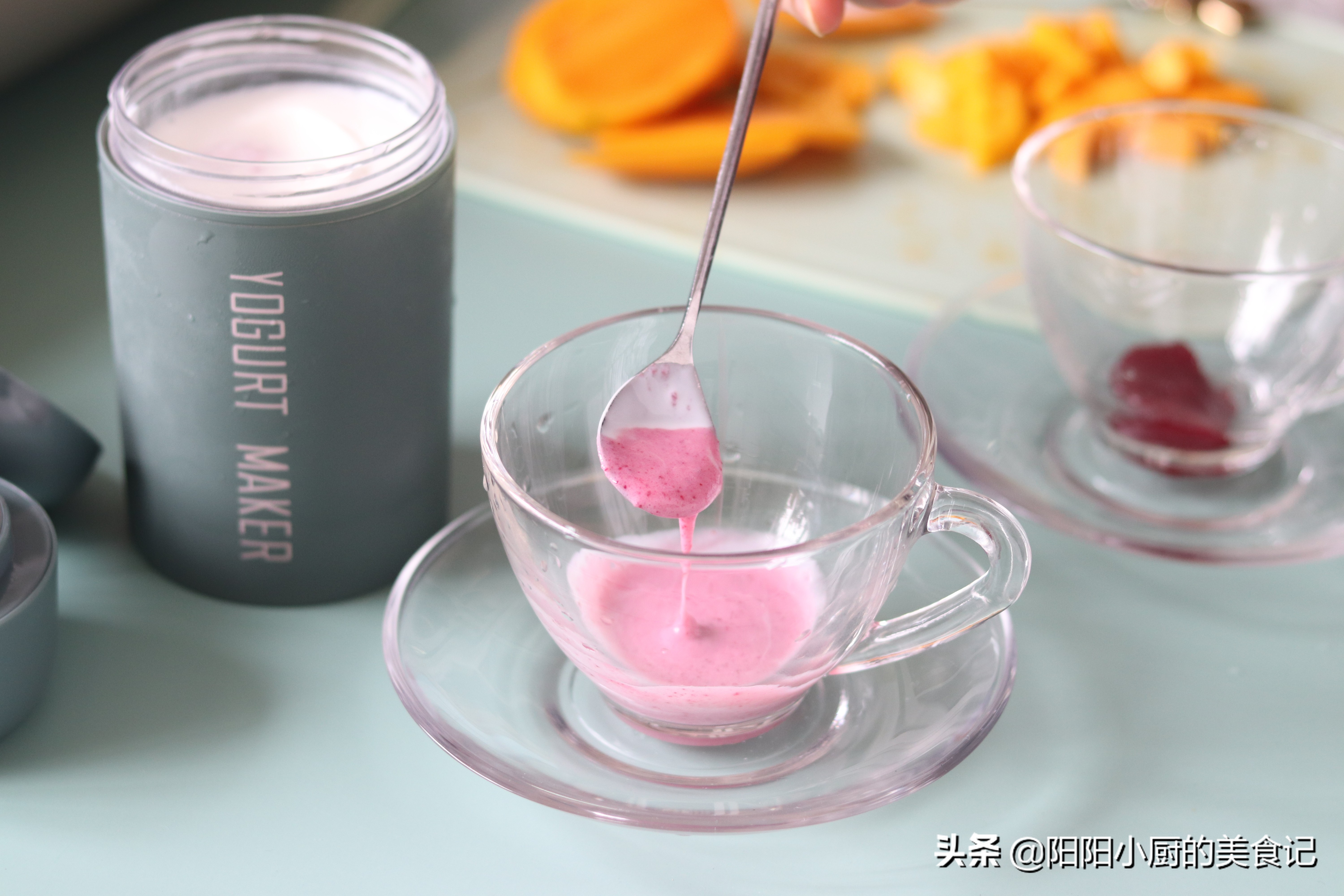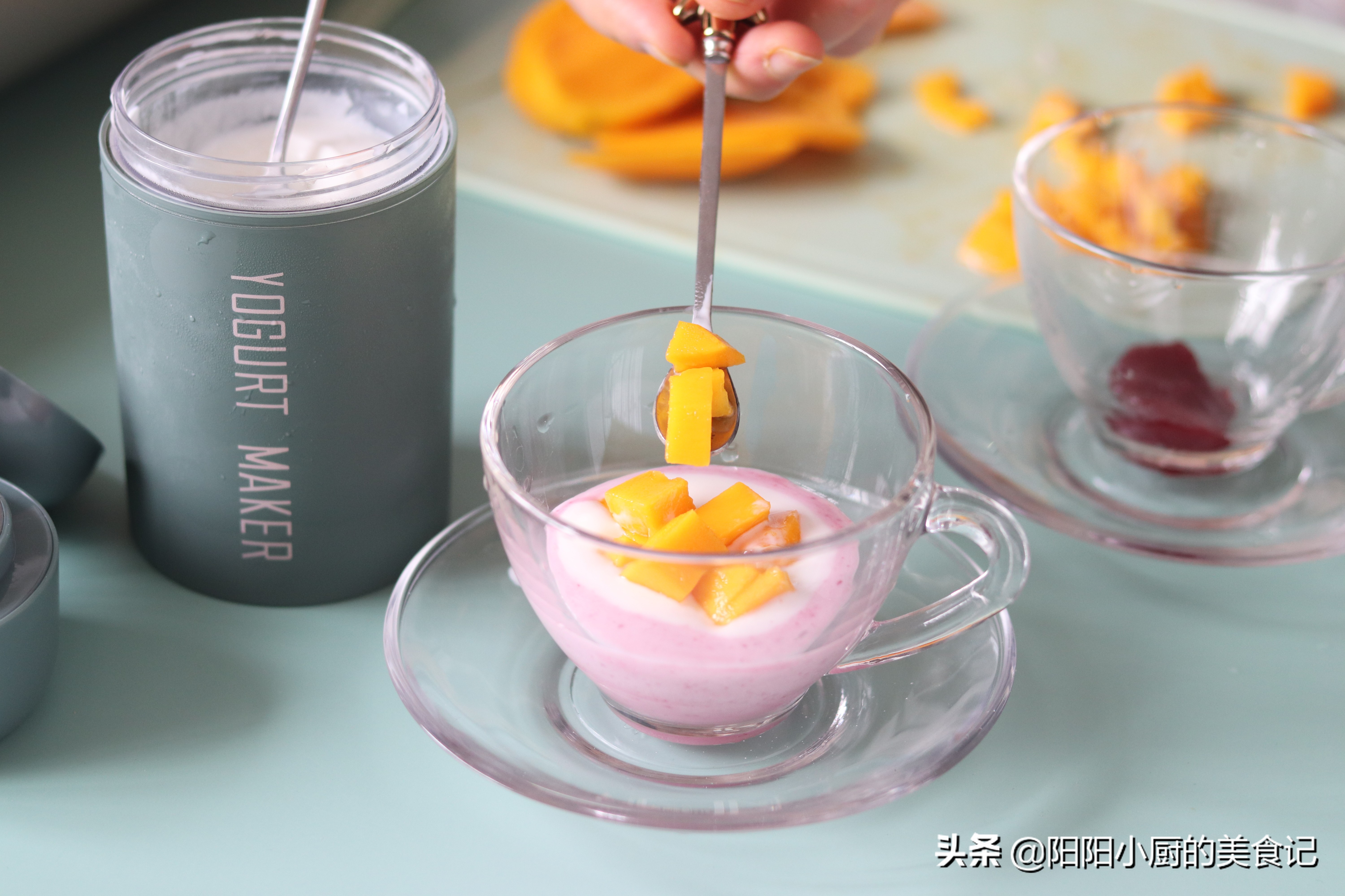 【食材】酸奶250毫升,菌粉0.5克,芒果2个,果酱2勺。