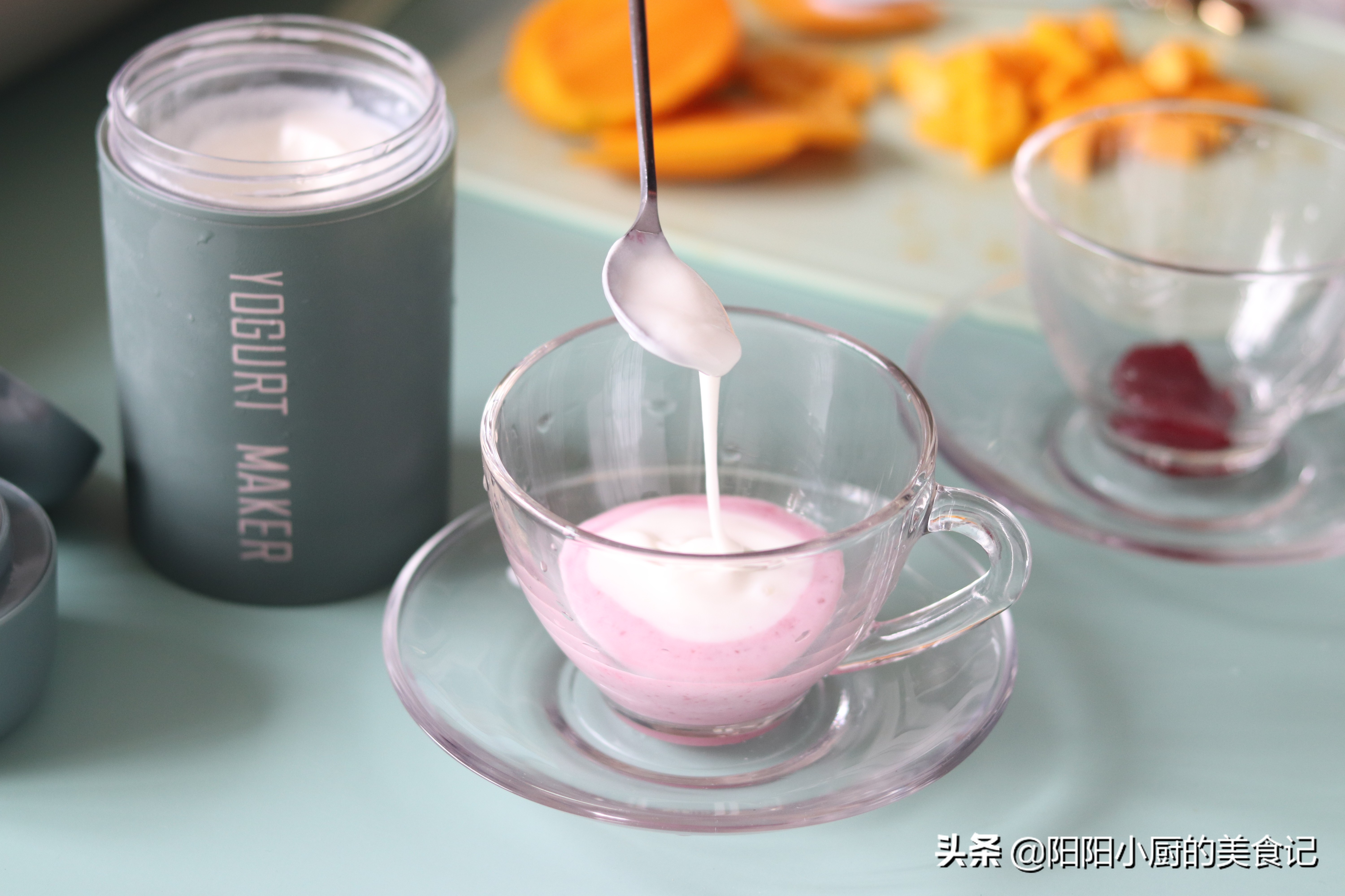 10、之后再放入酸奶,大约放到杯子的一半位置。