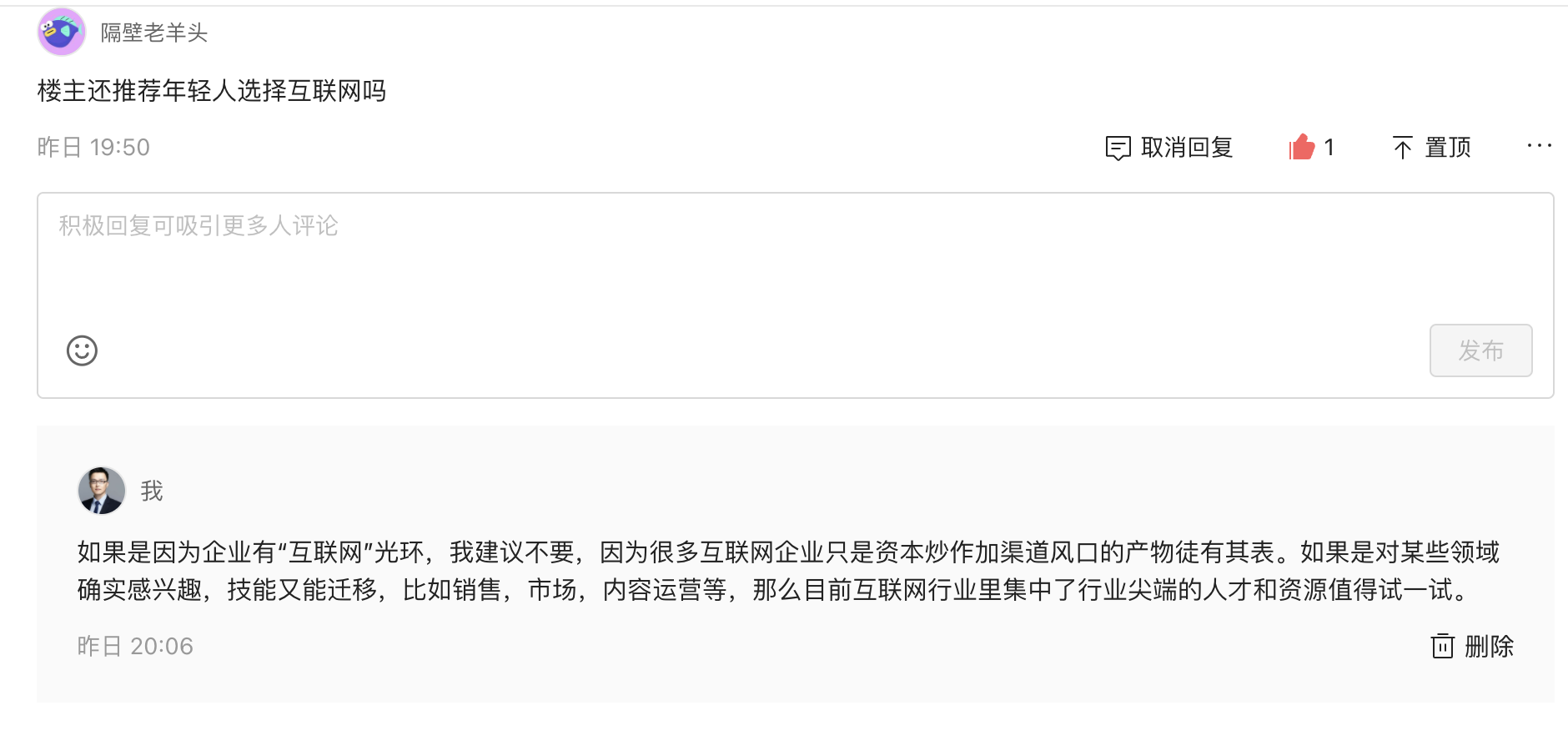 在我上一篇文章讲35岁互联网人行不行的杂文下面,有读者朋友给我留言问年轻人到底还要不要追求互联网。 我的回答是为了光环不值得,冲着行业资源、兴趣和技能培养可以试一试。这里面技能不仅是某个领域的技能储备和经验积累,也是工作习惯的养成,工作方法的积累,以及要加深对工作本质的思考。