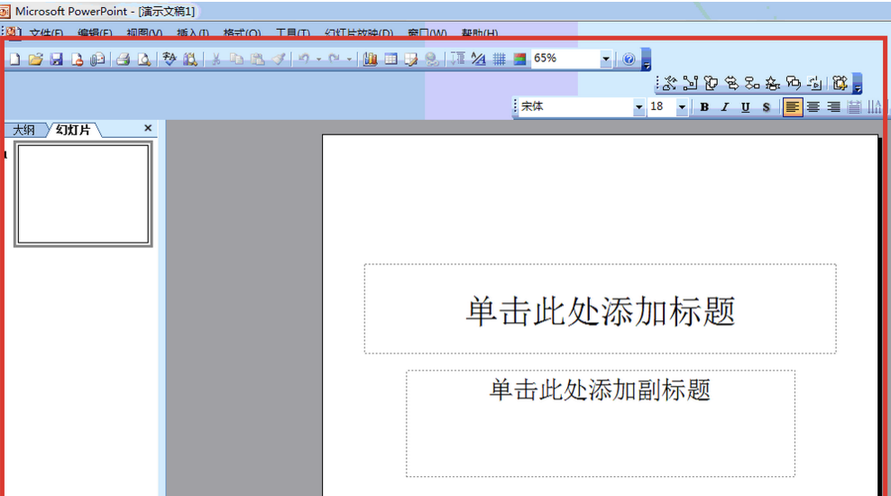2、进入“Microsoft Power Point 2003”编辑界面。如下图: