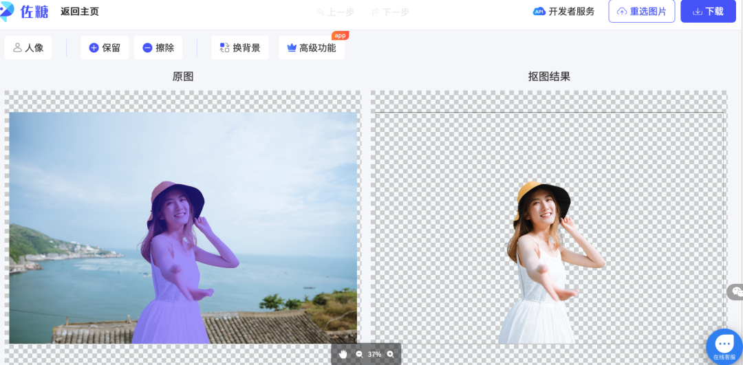 我们可以通过在线抠图网站将人物主体抠出。
