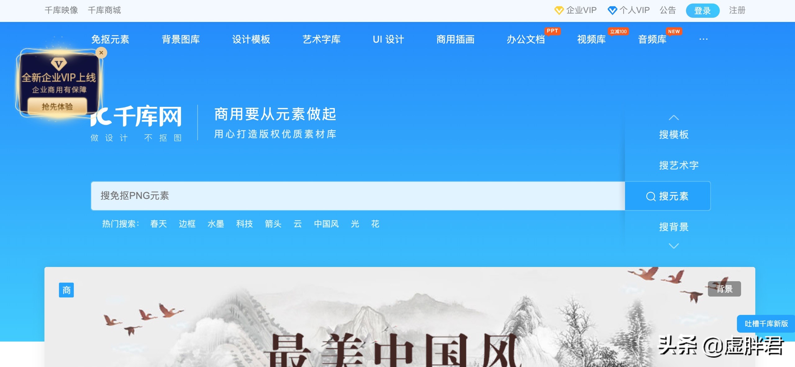 一个背景图片下载网站,拥有各种各样的背景图片,甚至还有艺术字,视频影视模版,甚至它还根据你使用的场景,区分为电商背景/易拉宝背景/大学宣传的背景,根据使用场景的选择,来选择各种不一样的素材,让大家在选择的时候更高效,非常方便快捷,可以帮大家节省很多时间。