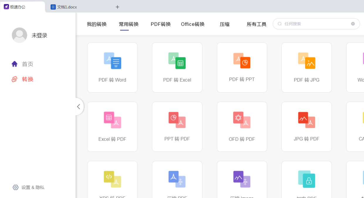 Speedoffice不止支持Word、PPT、Excel、PDF文档操作,还自带的格式转换功能,可以免费试用,如下图所示;