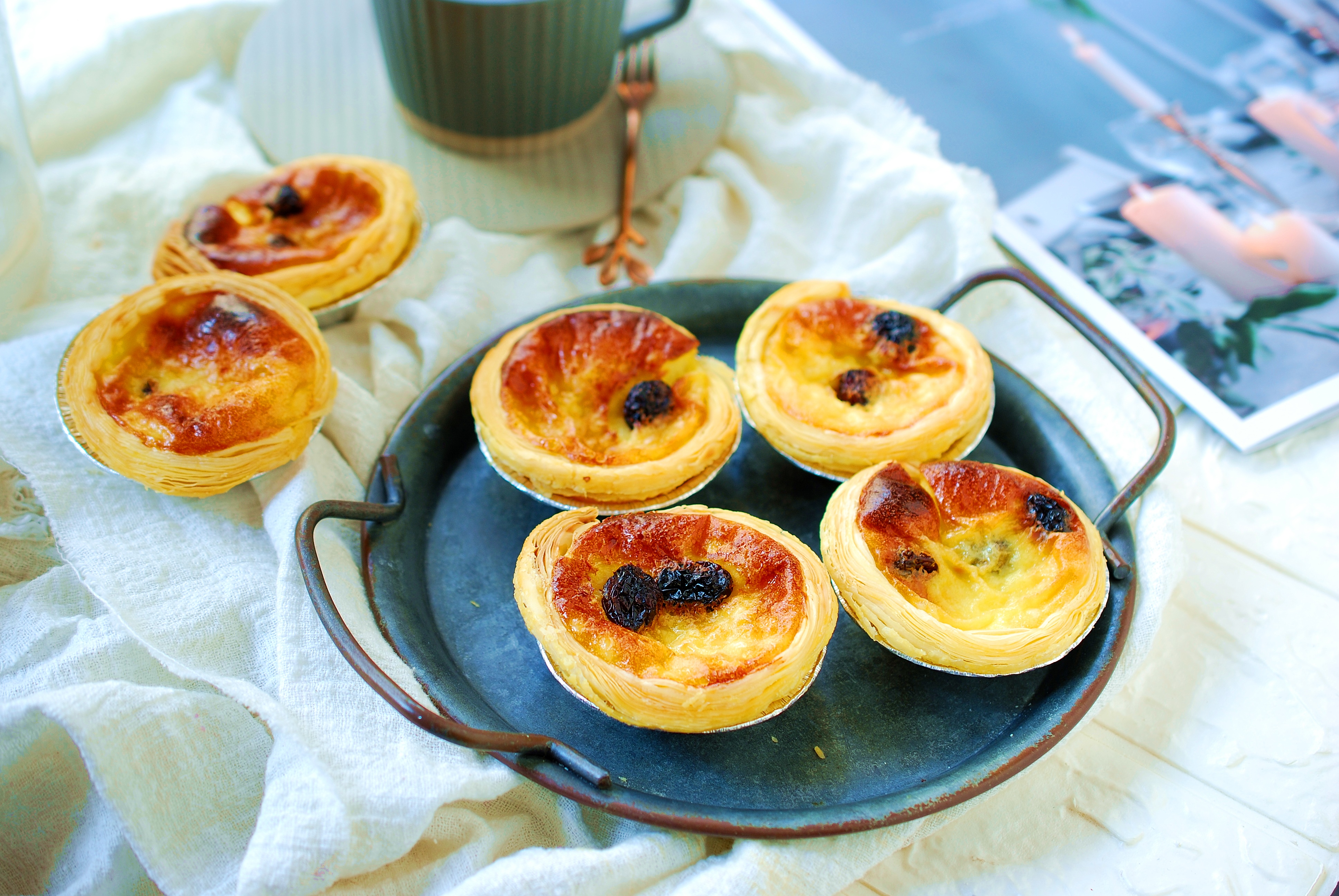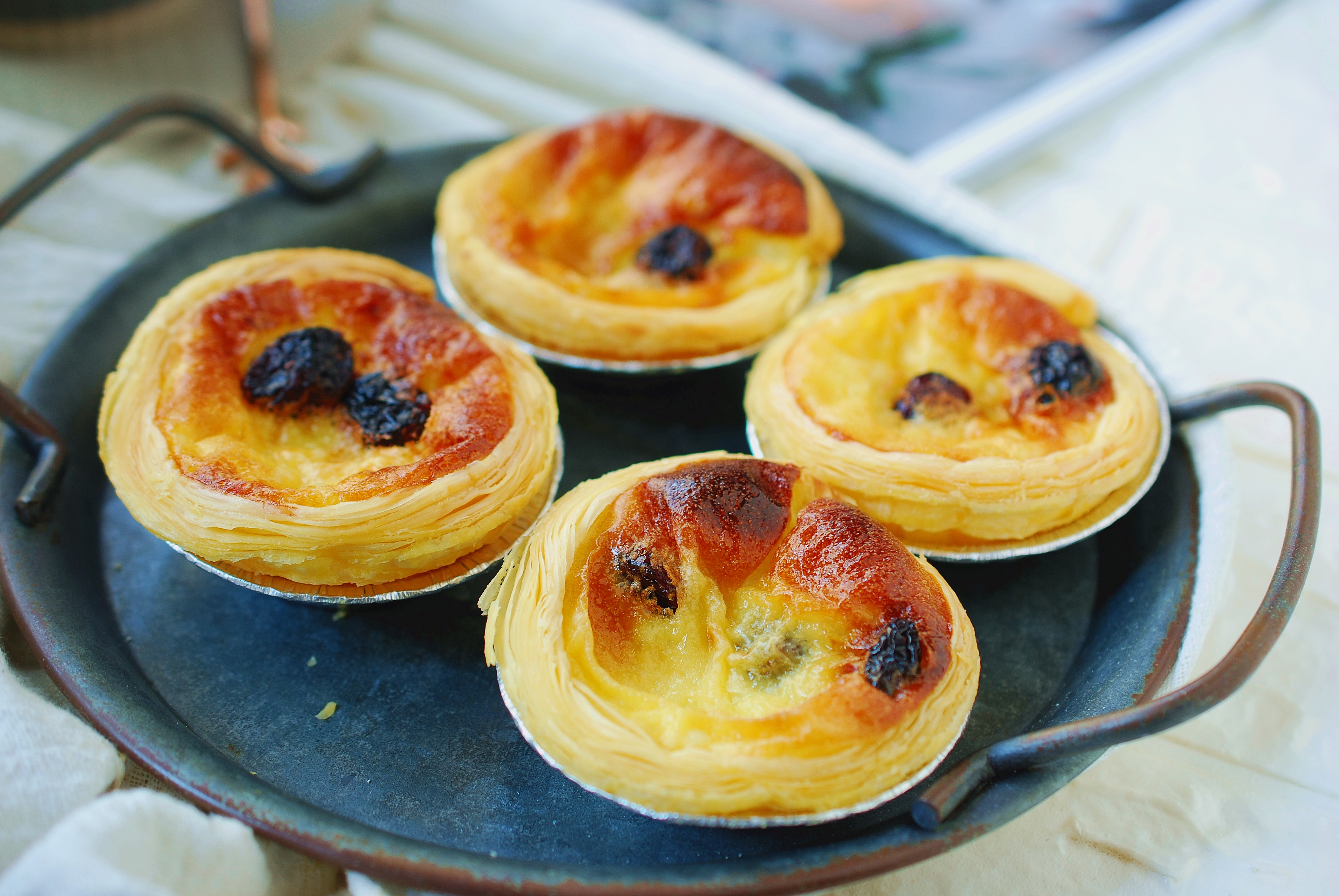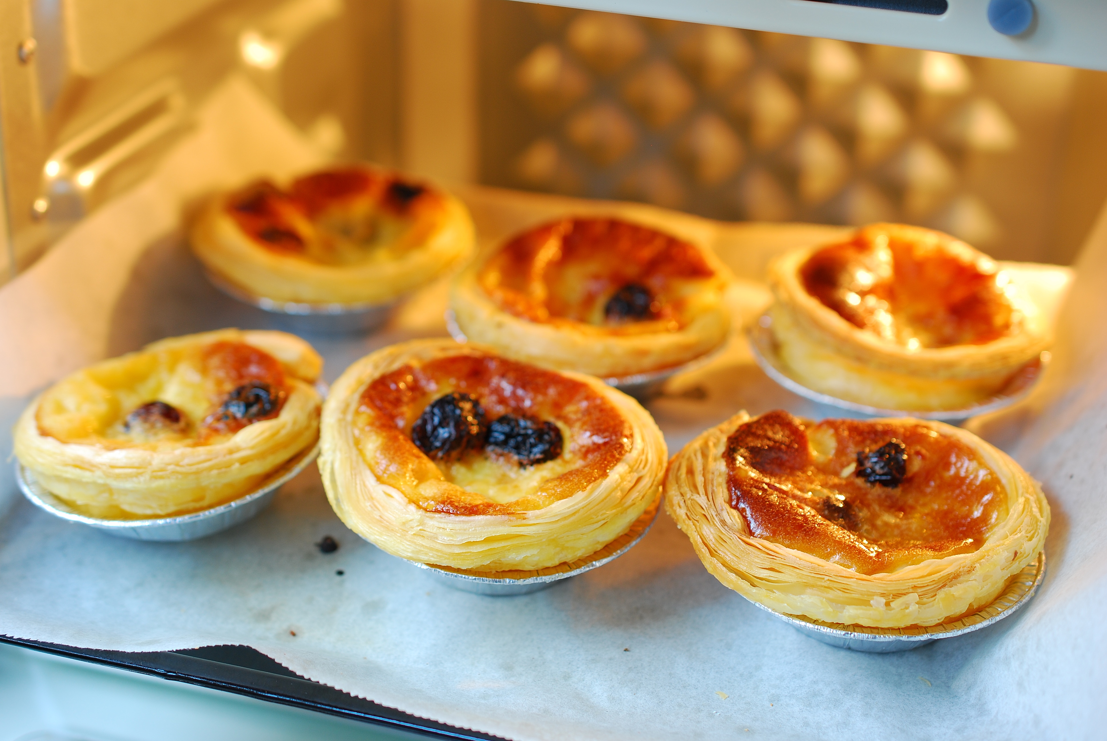 蛋挞烤好了,出炉!看这金黄的色泽,看这酥脆的层次!是不是特别诱人?是不是特别想吃?