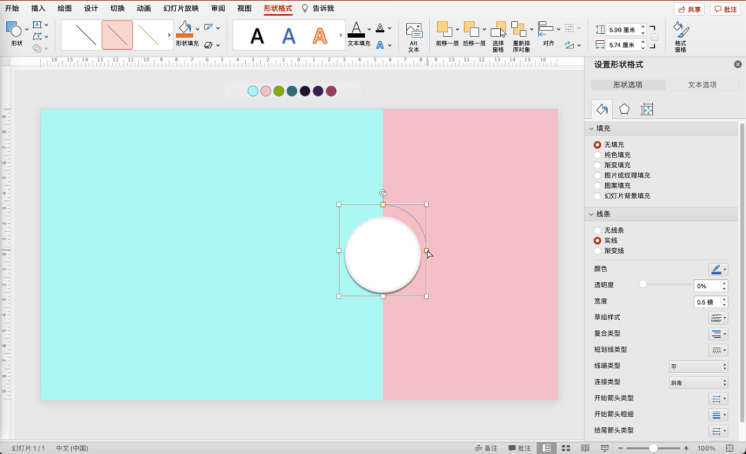 拖拽弧形的黄色标记,将它拉成圆形。