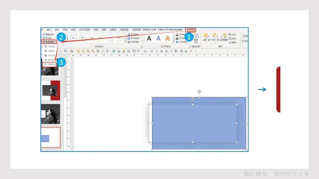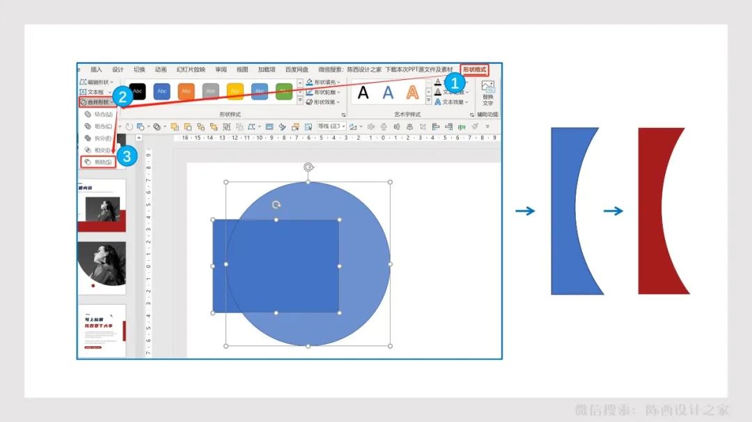 右侧弧形图片效果也可以通过合并形状的操作得到。