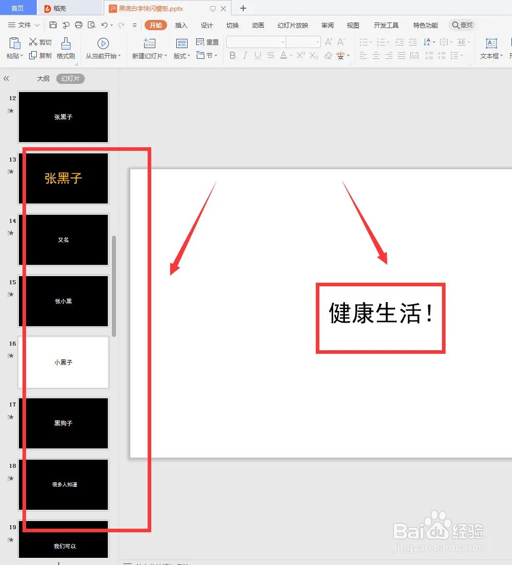 2.然后使用wps ppt打开已下载的模板。先预览一下左侧的幻灯片缩略图。