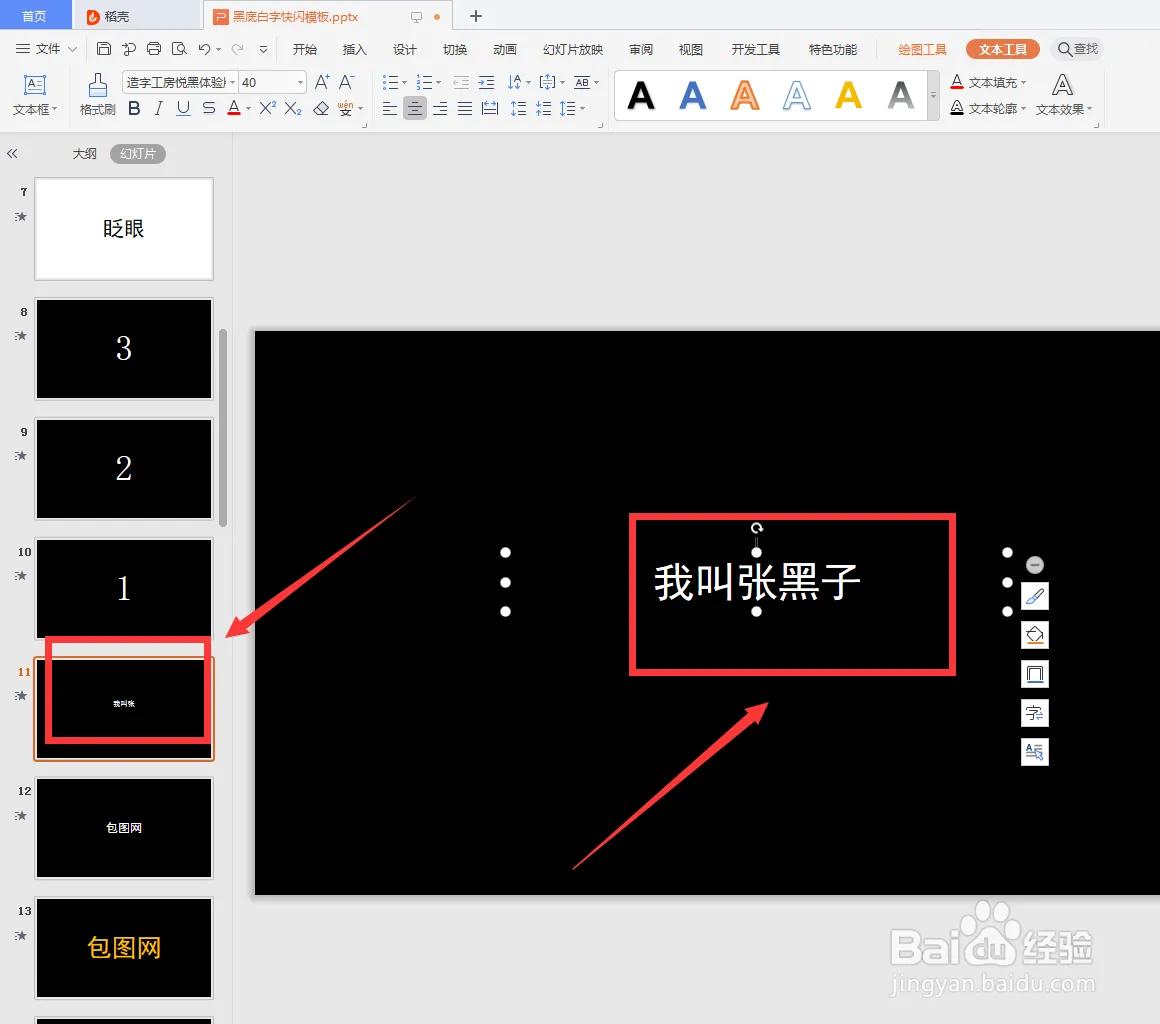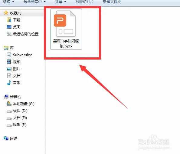 1.先搜索下载准备好黑底白字快闪PPT模板。