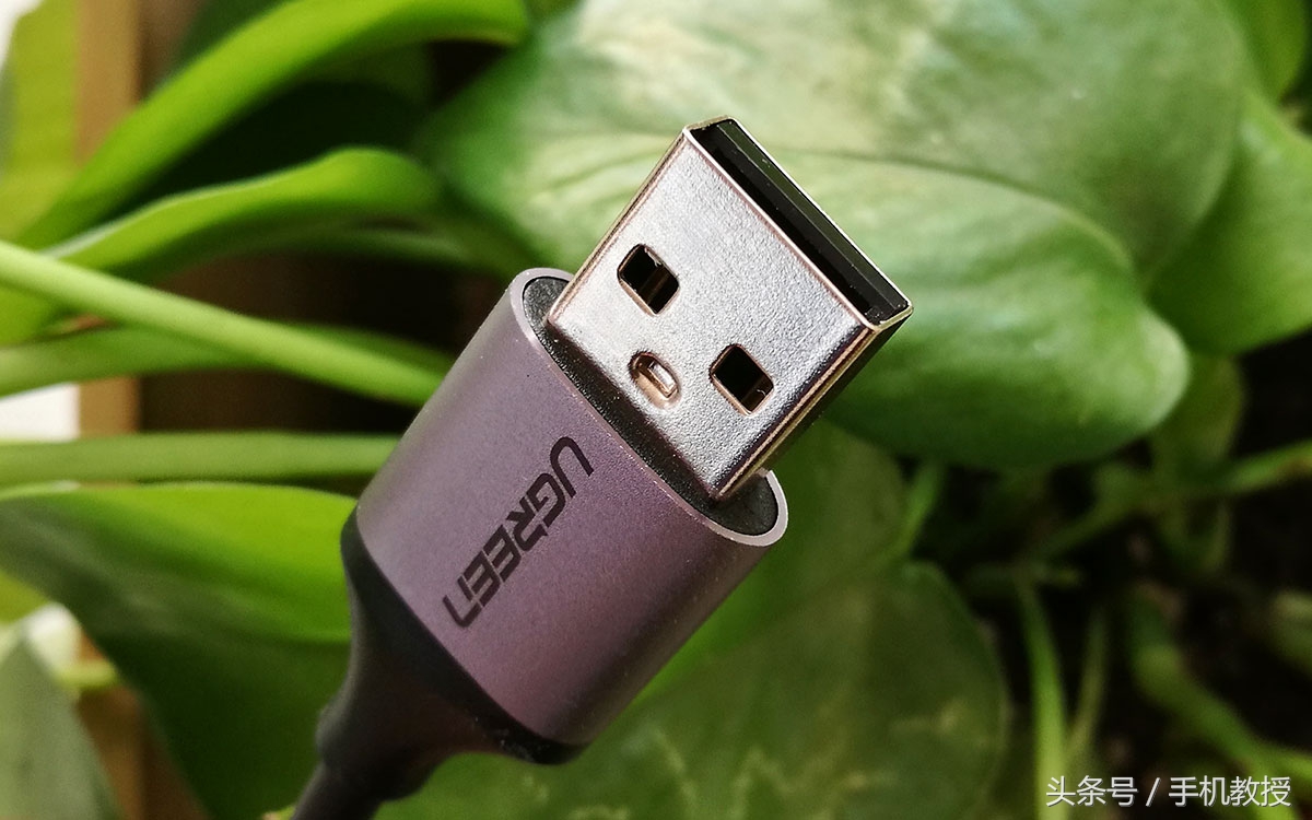 绿联视频转换线有三个不同接口,分别是USB公头(供电使用),USB母头(通过数据线连接到手机),HDMI接口(连接显示设备)。全部是金属外壳的接口,耐插拔,看起来也更高端大气。