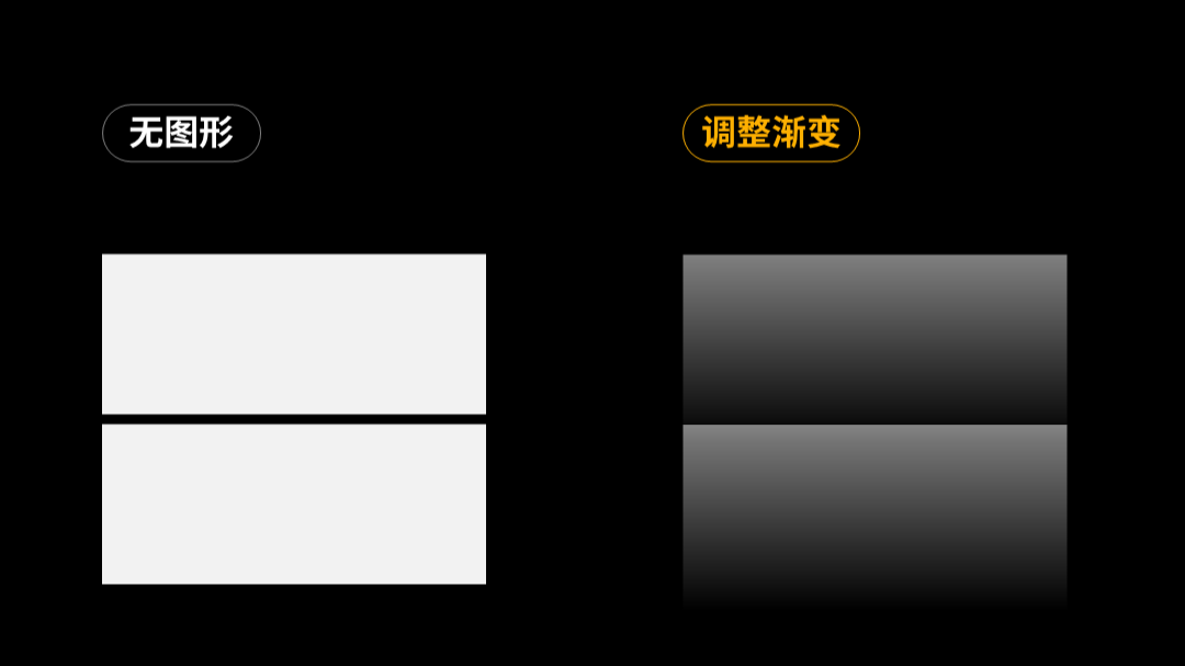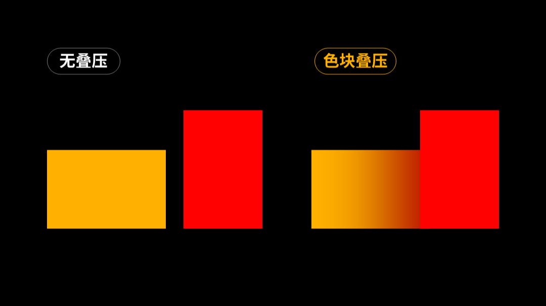 比如说有两个色块,我们就可以通过调整渐变,形成前后的空间感: