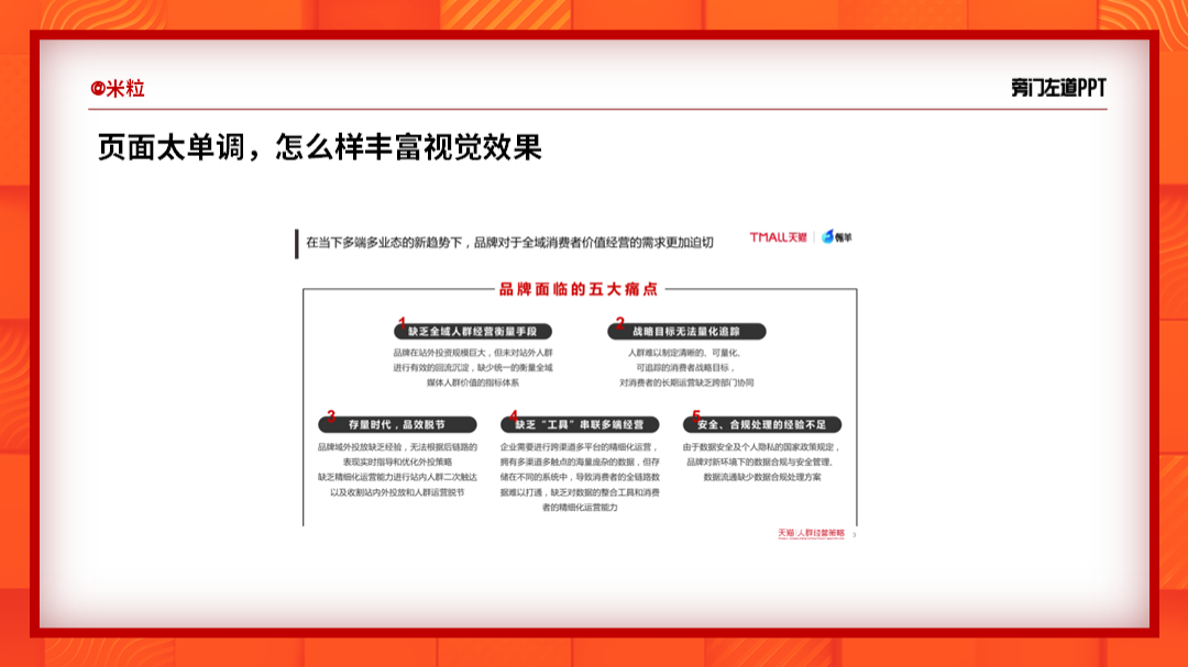 我相信,大家在做PPT时,一定会遇到的一个问题,就是页面看上去太平淡,该怎么办?