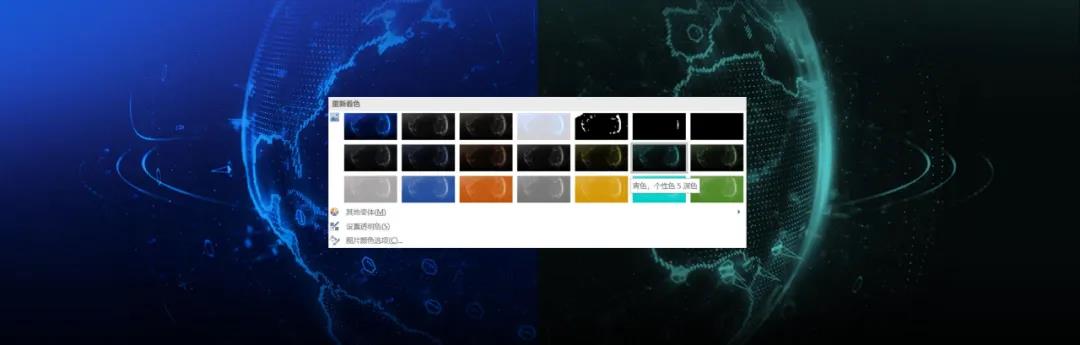 这个时候,我们就可以借助重新着色功能,一键把图片换成青色调: