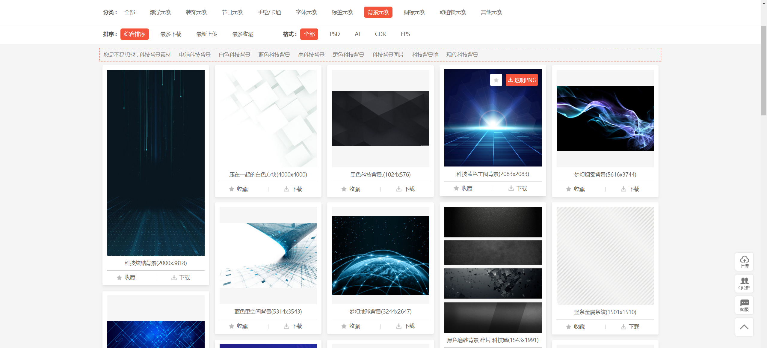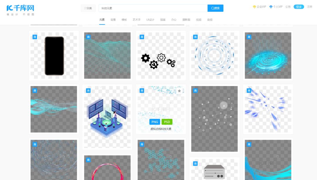 如果你不会绘制这些元素素材,网上就有许多专门的素材库,在千库网就可以直接搜索科技元素: