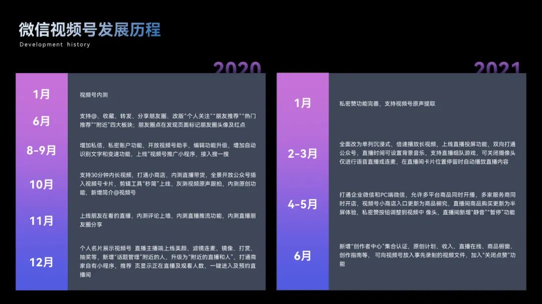想必大家都遇见过那种介绍企业发展历程、事件发展趋势的超多字 PPT,像这样的页面可以根据时间线来划分内容层级,这种区分方法适用于时间顺序十分清楚的页面。