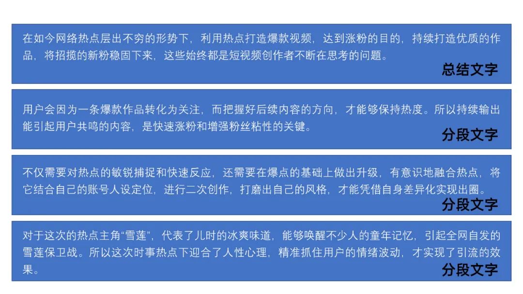 当不允许对 PPT 内容进行大面积删减和整理时那么在排版的时候,我们可以把刚才提炼出来的重点再概括一下作为主标题,原本的内容作为对主标题的补充说明。