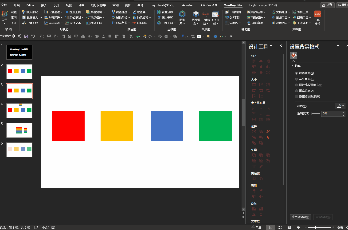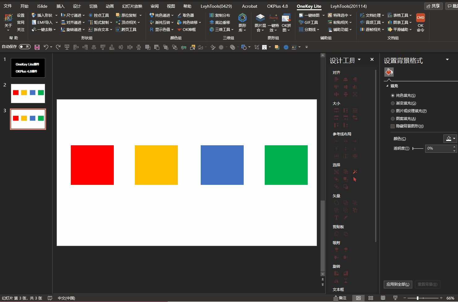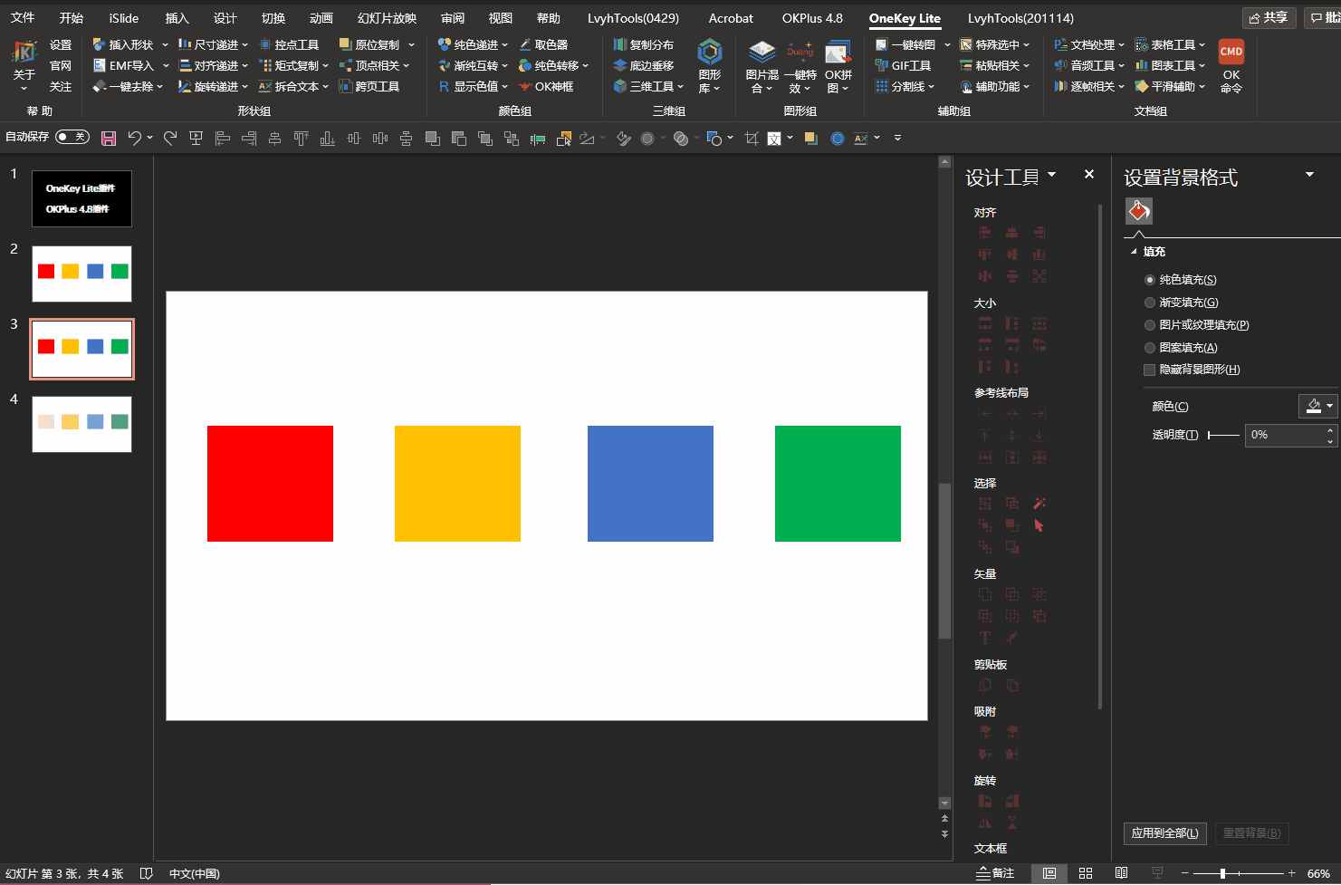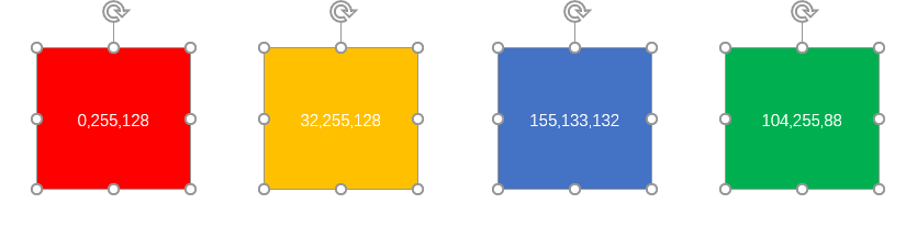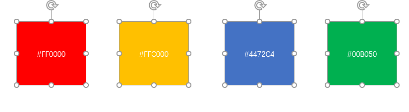 我插入了颜色为红黄蓝绿的四个矩形块: