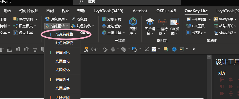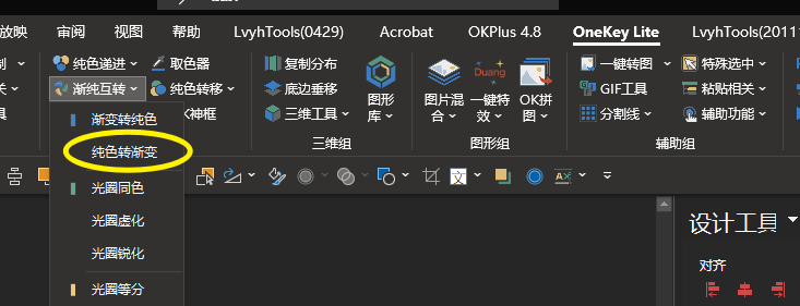 我们全选之后,点击【渐纯互转】中的【纯色转渐变】: