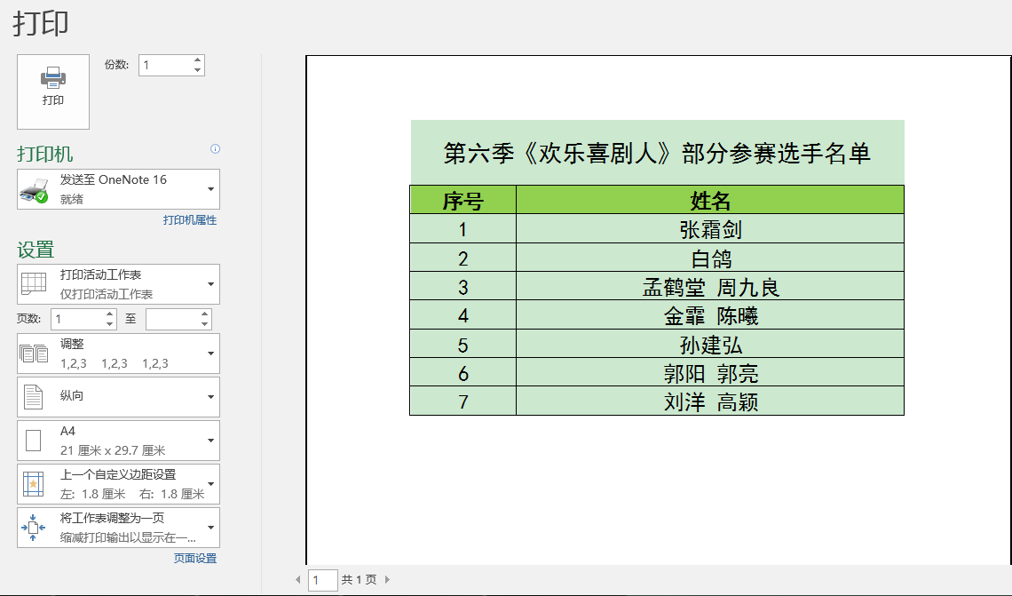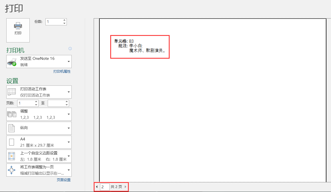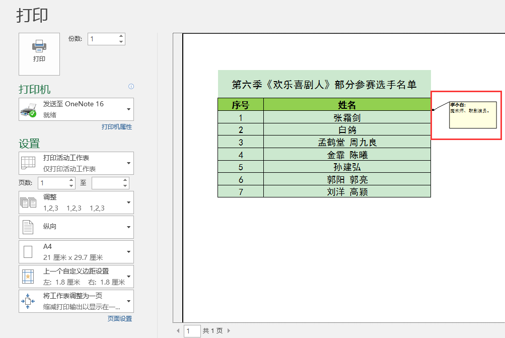 下面图1工作表中的B3单元格内容"张霜剑"添加了批注内容"魔术师、默剧演员。"进行注释说明,默认情况下我们在打印时是看不到批注内容的,如图2。如果我们要将批注内容打印出来该怎么办呢?这篇文章我们一起来学习一下。