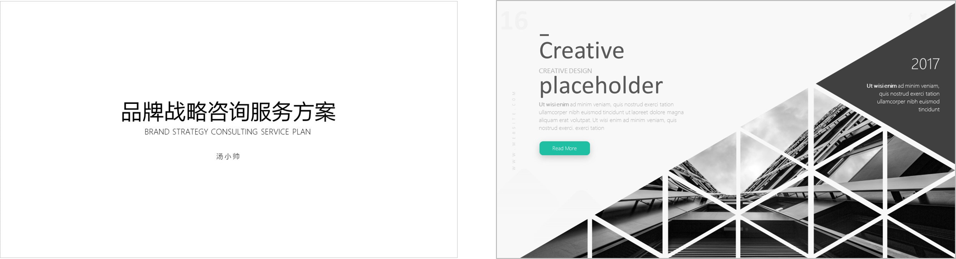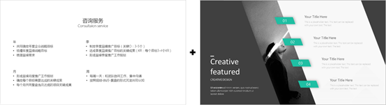2. 素材的美感不同。在一些很好看的模版中,所运用的图片素材,或者其他修饰性元素,都是十分高级的,经过专业的摄影师拍摄以及设计师设计。就比如第二页封面的模版,如果你把照片换成手机随手拍的公司大楼,或者公司的团队照片,美感就会瞬间低端了很多层档次。