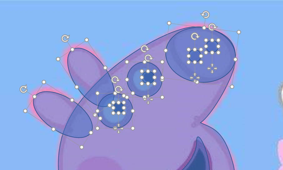 6)最后,你还要插入几个圆形跟椭圆,分别用来当做它的眼睛跟耳朵、鼻子: