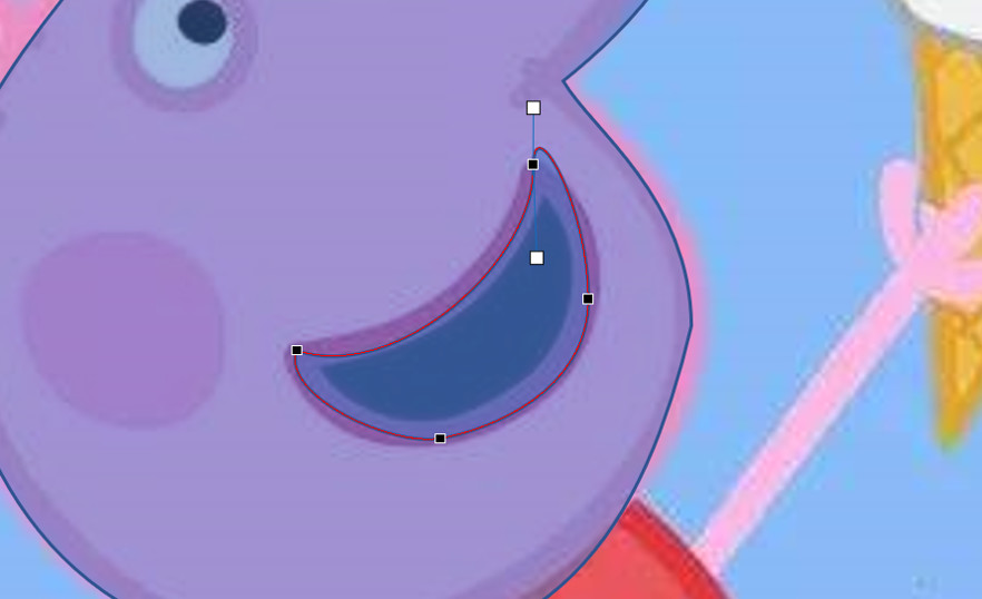 5)按照同样的方法,插入一个椭圆,通过【编辑顶点】,你可以画出它的嘴巴: