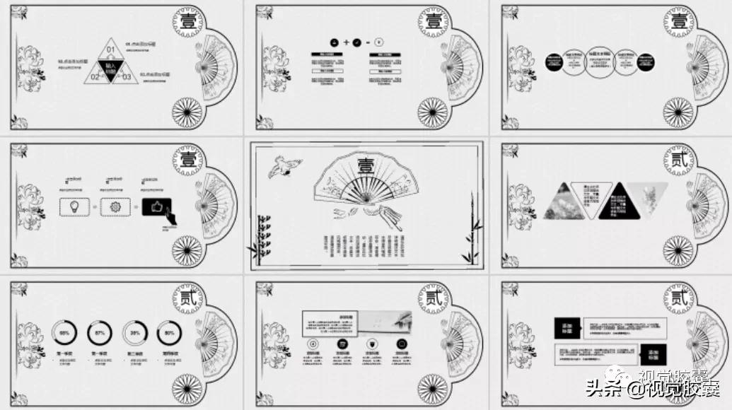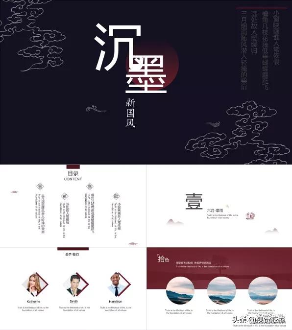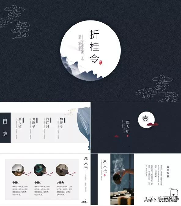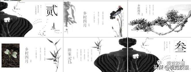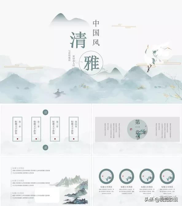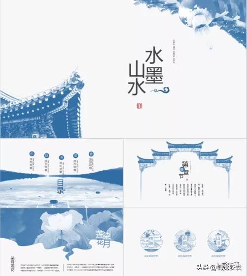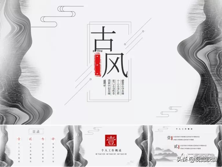 中国风不止有红色,更有水墨、留白、典雅的传统风格PPT。大多数情况下,方案叙事不会特别繁复或者大红大紫。以为就用不上国风PPT了?那你就吧中国风局限了!