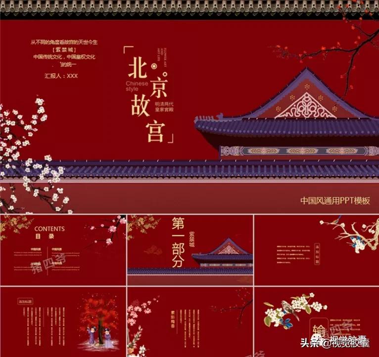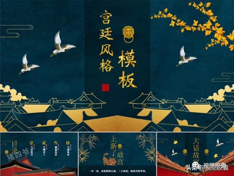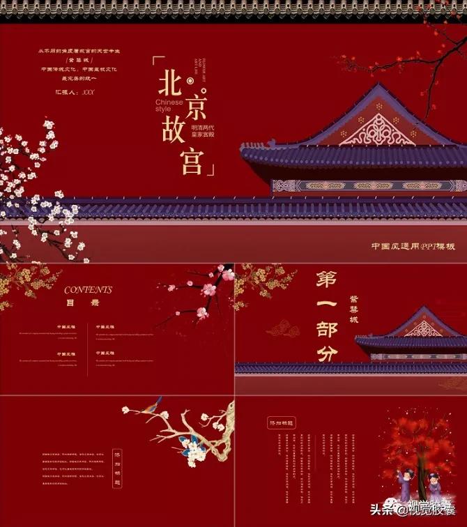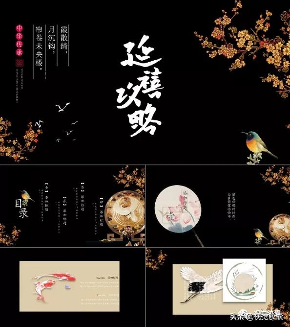 通常来说大型复杂的方案,会选用宫廷、故宫风的华美国风PPT。从色彩上能与画面感可以相配合,突出喧闹、热闹之感。