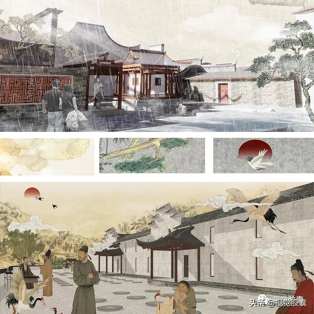 水墨画中的墨韵、留白,还可以做到极致素雅!当你的方案比较追求意境,不妨用留白的素雅风和写意的水墨风。