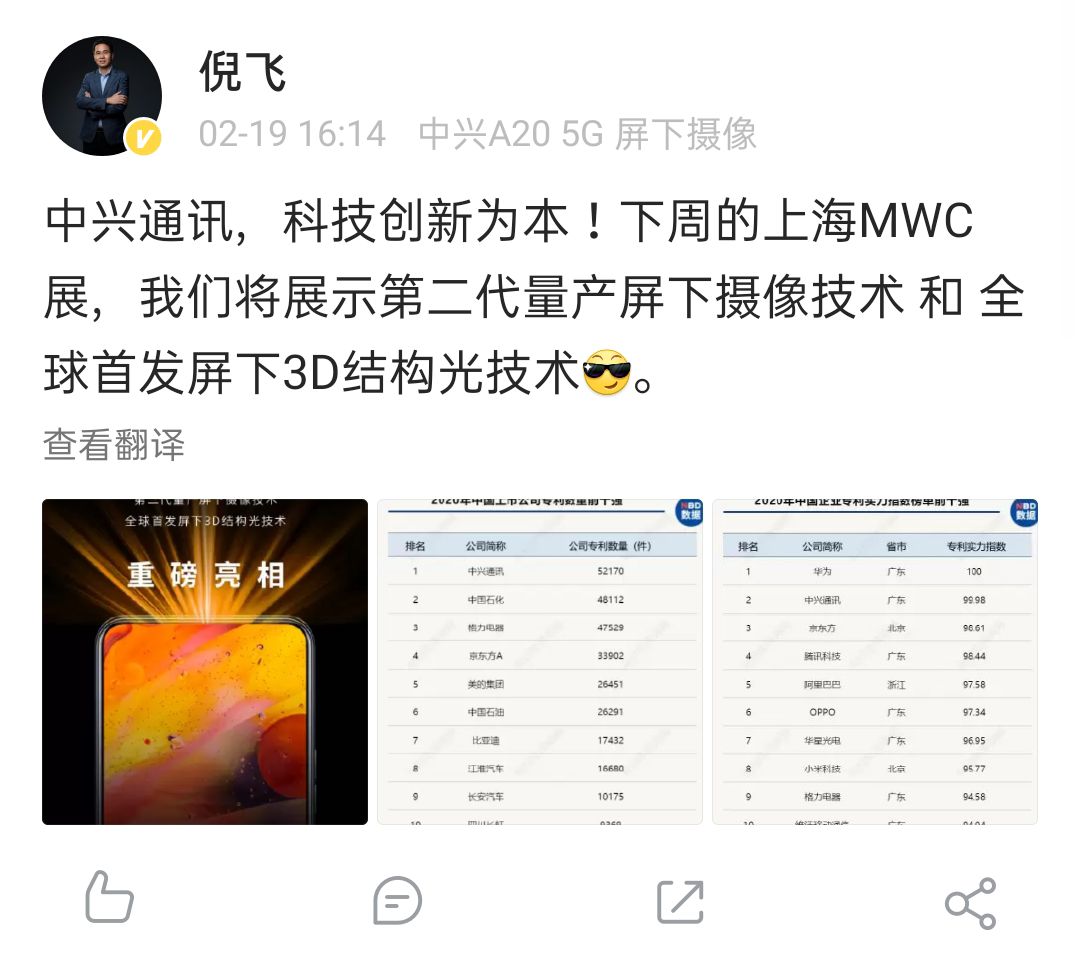 令人感到庆幸的是,近日,中兴总裁倪飞突然宣布中兴将在2月23日的世界移动大会上发布第二代量产屏下摄像技术。该技术能够支持3D结构光功能,并且是全球首款屏下3D结构光技术,有望打破苹果手机对结构光的“垄断”,将手机支付带入一个全新的时代。对此,不少网友发出了质疑,才刚得到DXO自拍最低分的中兴,凭什么能超越苹果?