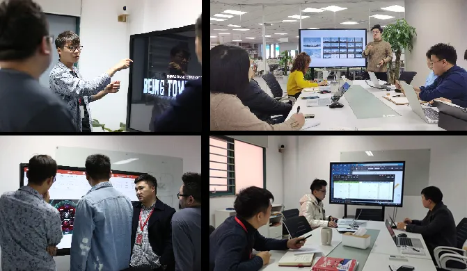 标准的团队至少需要6个人:项目经理+制片人+策划师+设计师+建模师+动效师,有时候还需要剪辑师、插画师。这个团队还不仅仅各司其职,在项目启动前、构思中、设计中、排演中,都需要团队密切沟通、多次碰撞、反复调试。
