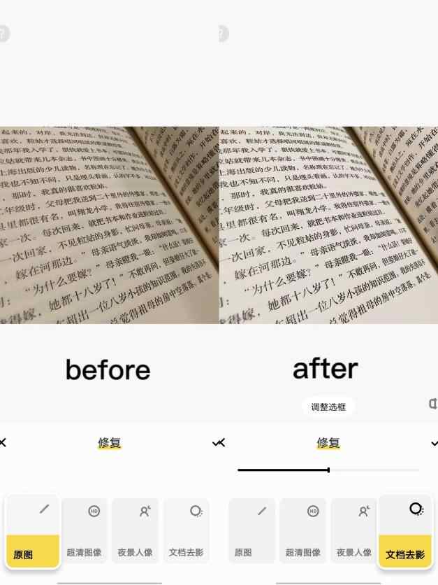文档去影功能,能方便学生党或工作党,将书本、文件等纸质的东西进行清晰记录,方便整理、云储存和云备份。