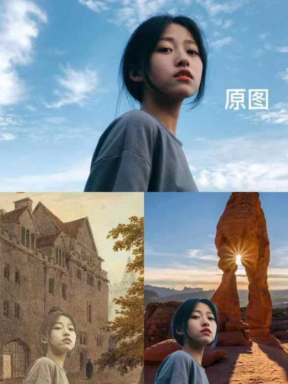 更方便的是,不管是快速换背景还是艺术画,都帮你利用算法加工一道,将抠出的人物与背景的颜色进行智能融合,简单地说,就是成片更加自然,而不是普通的图片硬拼接和覆盖。