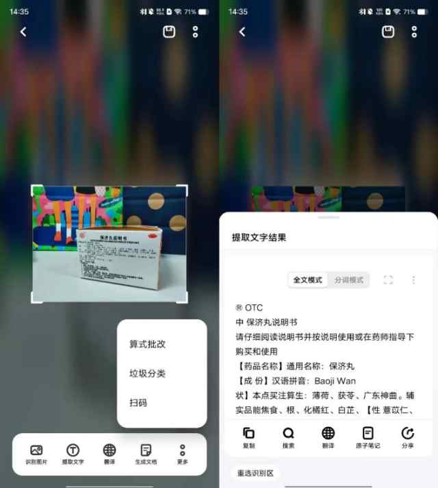 除了识别万物,它还支持提取文字、翻译、生成文档、垃圾分类、扫码,实测垃圾分类真挺有用的。