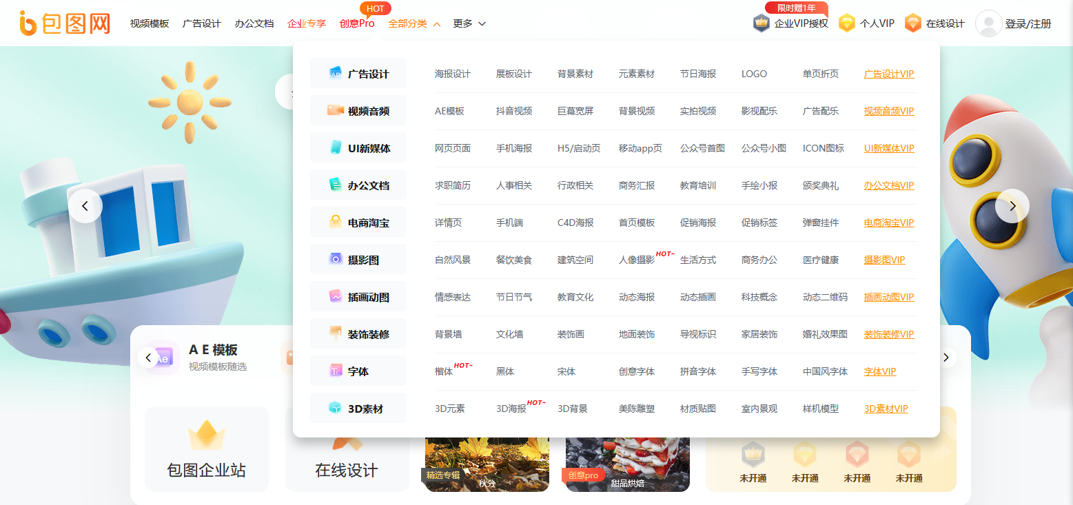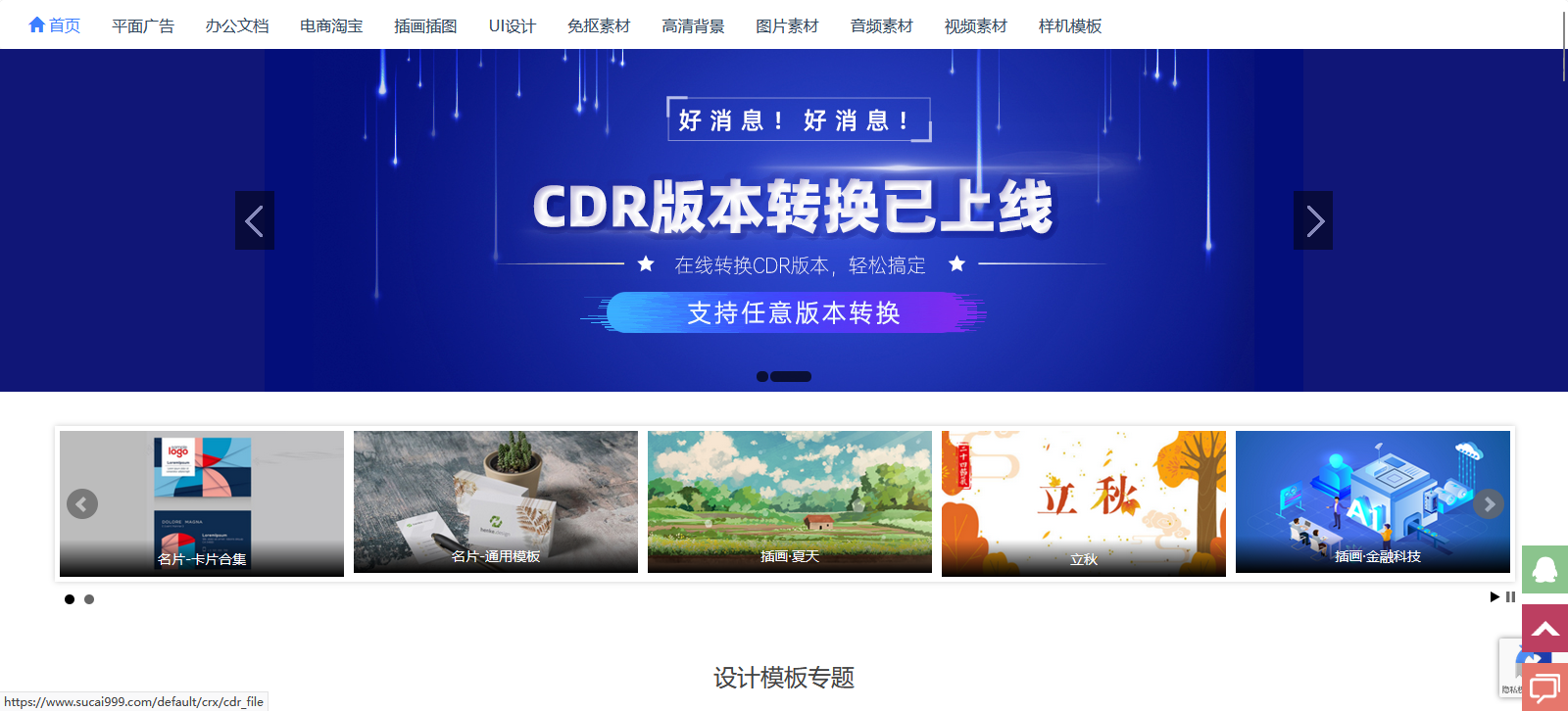 素材多、板块功能齐全,什么平面海报、摄影素材、淘宝电商等等要多少有多少。而且还能在线编辑,非常方便。